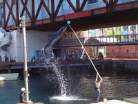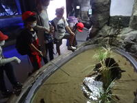 子どもたちは、えさやり体験やイルカショーを楽んでいました。