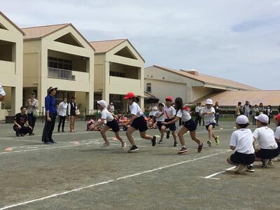 天候にも恵まれ、素晴らしい青空の下、どの学年の子供たちも最後まであきらめないでバトンをつなぎ走りきりました。