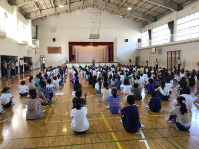 5月1日に朝礼を行いました。今回の朝礼では初めて1年生も参加しました。校長先生から学校教育目標のお話があり、上級生は下級生の手本となるような姿勢が見られました。朝礼の最後に歌った歌声は、体育館に響き、素敵な朝の朝会となりました。