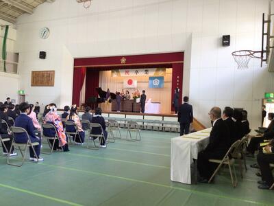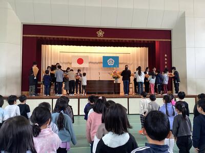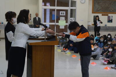 在校生は各学年の代表児童が修了証書を受け取りました。代表児童が3学期に頑張ったことを話しましたが、3学期の頑張りだけではなく、1年間の成長を感じさせるような話しぶりでした。