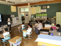 ・勉強で交流…6年生にかけ算九九を聞いてもらい出来たら、メダルをプレゼント